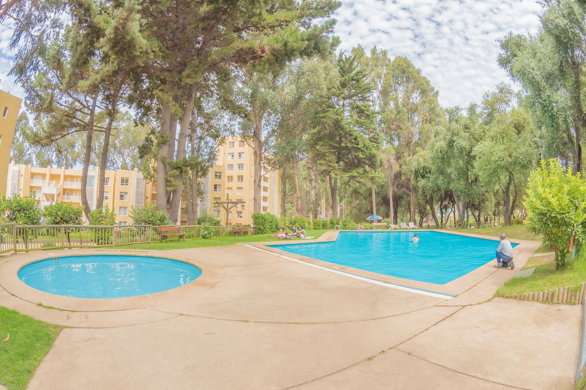 El recinto cuenta con piscinas exteriores, amplias áreas verdes, zona de juegos infantiles y canchas deportivas, además de quinchos equipados, sala de juegos y un mini-market dentro del complejo. La playa se encuentra con acceso directo desde el condominio, lo que permite disfrutar del mar en cualquier momento del día.