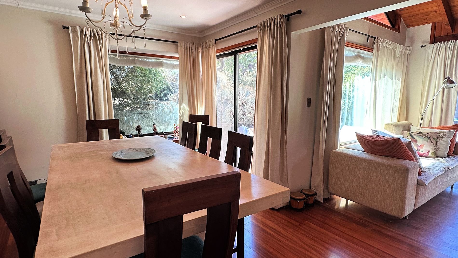 Ubicada en Bosques de Aculeo, esta casa ofrece un entorno ideal para descansar y disfrutar rodeado de naturaleza. Con una amplia terraza, piscina privada y quincho equipado, es perfecta para compartir momentos en familia o con amigos. Sus amplios espacios exteriores permiten aprovechar al máximo la tranquilidad y el paisaje que caracteriza la zona.